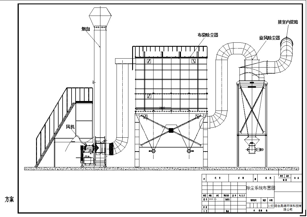 根據(jù)該公司粉塵排放特點,以及對其可行性、經(jīng)濟方面進行綜合比選后確定采用旋風除塵器+布袋除塵器方式處理粉塵;