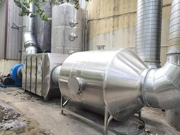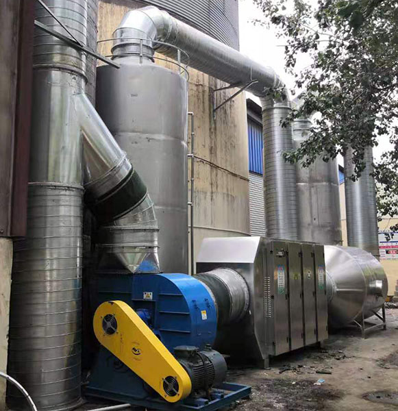 飼料在堆存、發(fā)酵過程中產(chǎn)生一定量的廢氣,奧維環(huán)保現(xiàn)場考察,發(fā)現(xiàn)有4個廢氣產(chǎn)生點,可以共用1套廢氣治理設(shè)備,主要設(shè)備有,噴淋塔、UV光氧催化設(shè)備、采用噴淋塔+UV光氧工藝,有機廢氣經(jīng)過噴淋塔,除去廢氣中的可溶性氣體。UV光氧分解臭味氣體,凈化達標后直接排放;