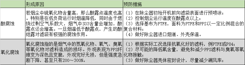 腐蝕損壞最明顯的特征為濾袋的強(qiáng)度整體大幅度下降,除塵中主要表現(xiàn)為酸腐蝕,氧化腐蝕等導(dǎo)致濾袋失去可以承受的負(fù)荷,從而失去過(guò)濾性能而失效。