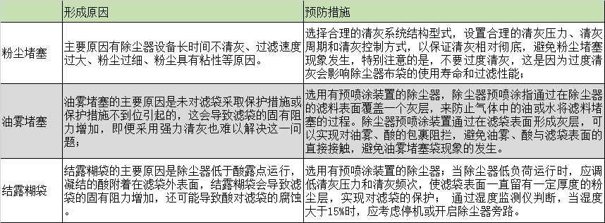 堵塞失效主要包括粉塵堵塞、油霧堵塞、結(jié)露糊袋三種類型。