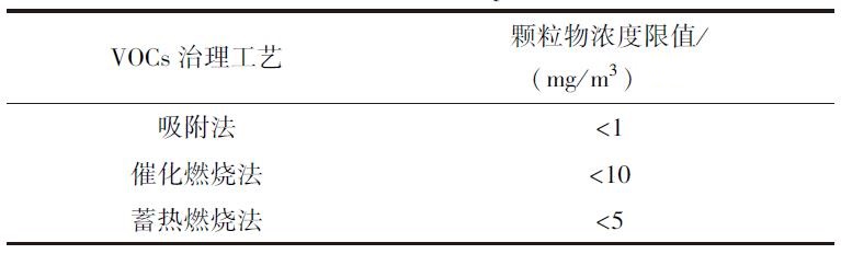 關(guān)于VOCs處理系統(tǒng)中顆粒物的濃度要求,目前國家已有相關(guān)技術(shù)規(guī)范,明確規(guī)定采用吸附法、催化燃燒法、蓄熱焚燒法時(shí),有機(jī)廢氣中的顆粒物濃度限值如下所示。