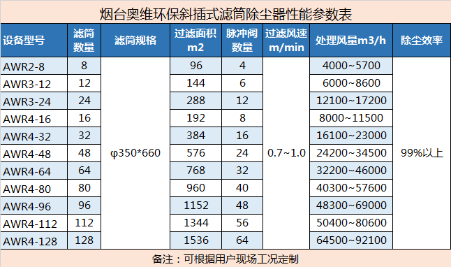 含塵氣體由進(jìn)風(fēng)口進(jìn)入除塵器后,氣流速度減慢,粗顆粒脫離氣流沉降到集塵室內(nèi),細(xì)微粉塵隨氣流穿過濾筒時被阻于濾筒外表面,潔凈氣體由出風(fēng)口排出;技術(shù)參數(shù)